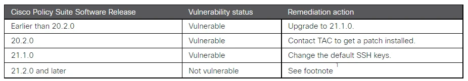 - Description: Cisco Policy Suite Static SSH Keys Vulnerability