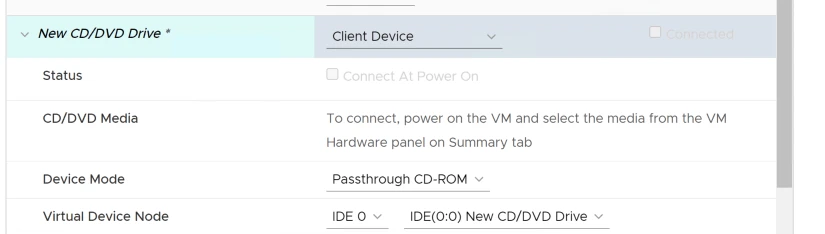 - After that, uncheck the “Connected” and “Connect at power on.”