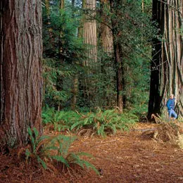 Walk among giants on this quiet hike past the Grove of Titans and other 300-foot-tall redwood trees.