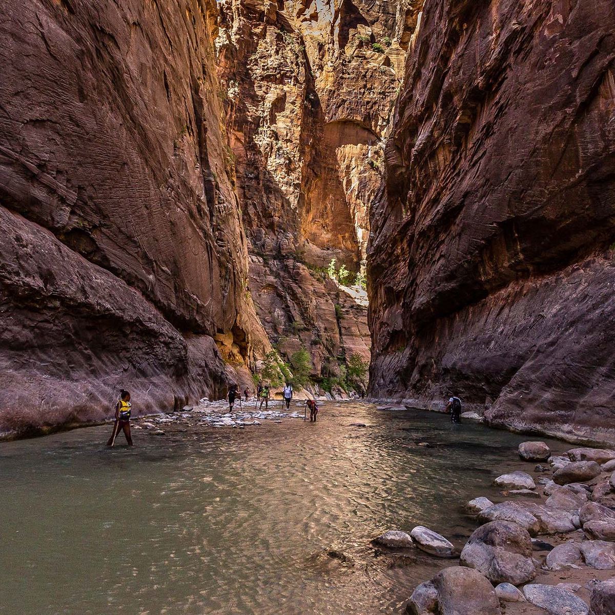 - Ask about water levels at the visitor center before hiking. The Virgin River is prone to flash floods, especially during the summer rainy season. You can also check flow data online.