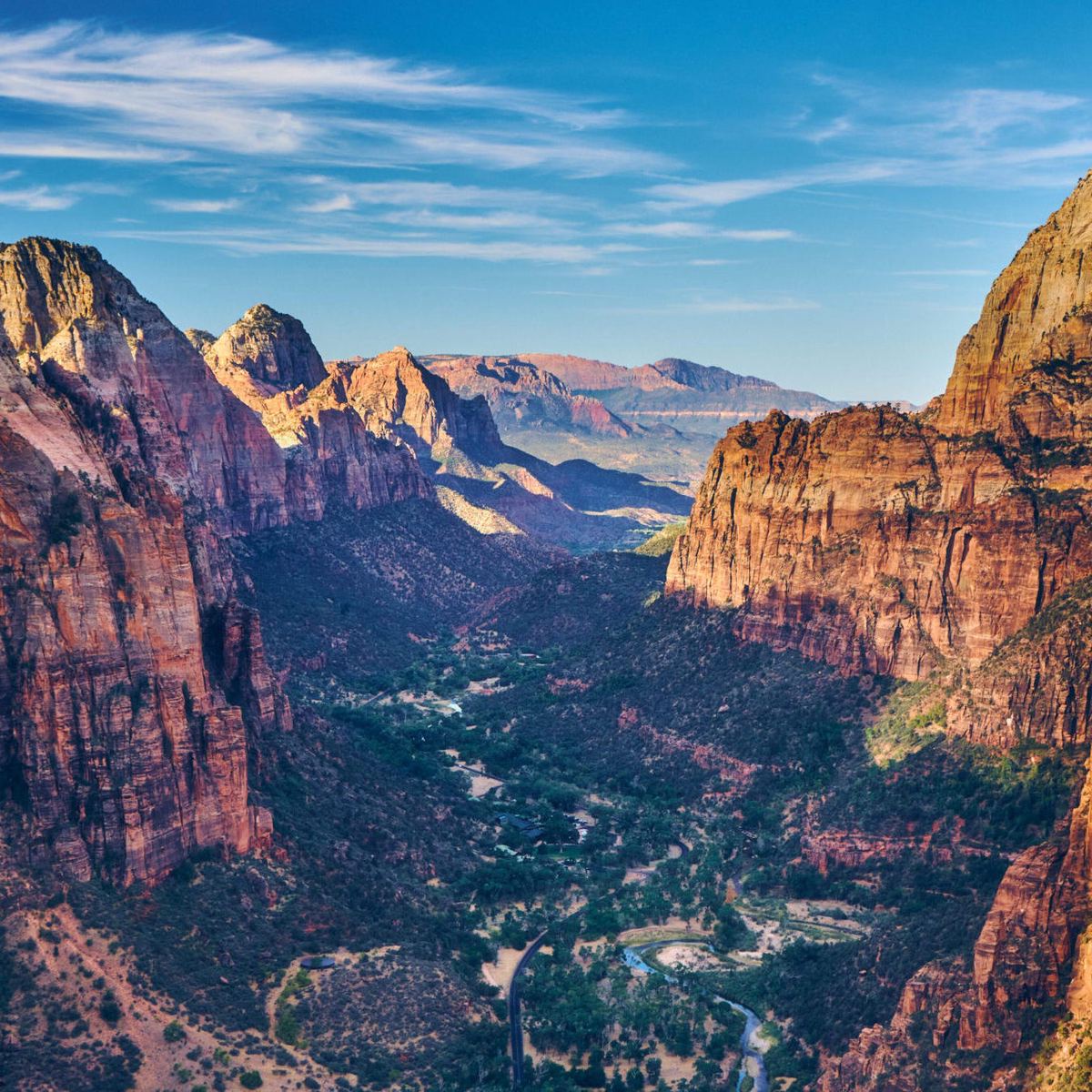 In the southeast corner of Zion National Park, the Virgin River cuts through 270-million-year-old layers of Kayenta and Navajo sandstone. The Angels Landing hike climbs up from the gorge’s belly to a rock overhang above iconic Zion Canyon. Along the way, it bends through green riverbeds, orange-red canyons, and rapid switchbacks. When you’re climbing the knife-edge ridge up to Angels Landing, hold onto the supportive chain and don’t look down—if you’re sensitive to heights, the 1,000-foot drop is sure to make your head spin. The reward for all that exposure is a 360-degree view of some of the country’s most colorful landscape.