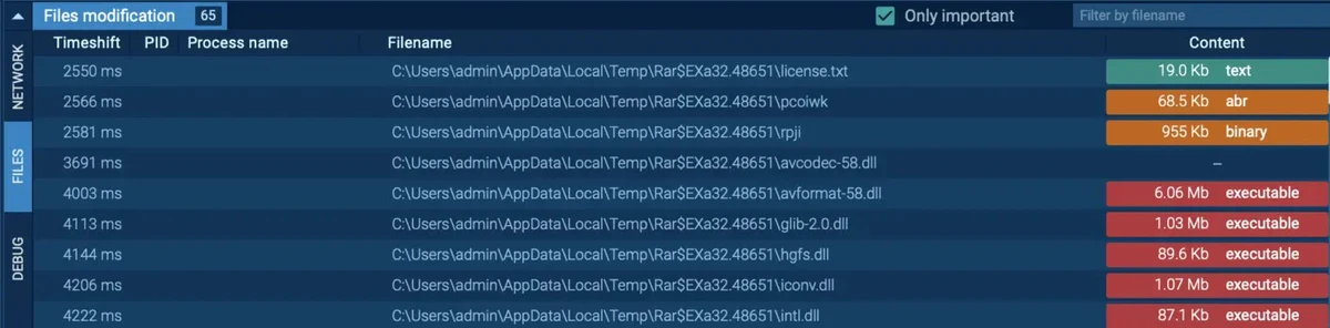 In the bottom panel under “Files,” analysts can track “Dropped Executable Files,” revealing the malware’s “propagation” across the system.
