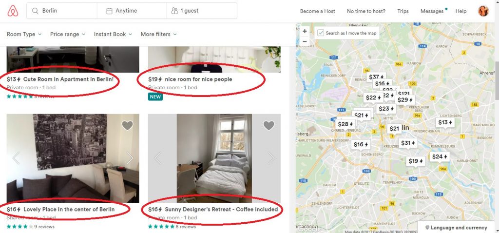 A similarly authentic travel experience is Airbnb, which to me feels almost like Couchsurfing when I rent a room in somebody’s apartment (instead of the entire apartment). I’ve found that in Germany, private rooms in an Airbnb usually only cost a couple of Euros more than a bed in a hostel dorm bed – and even though I enjoy staying in hostels, sometimes I appreciate having my own room and not having to share a bathroom with a dozen other people.