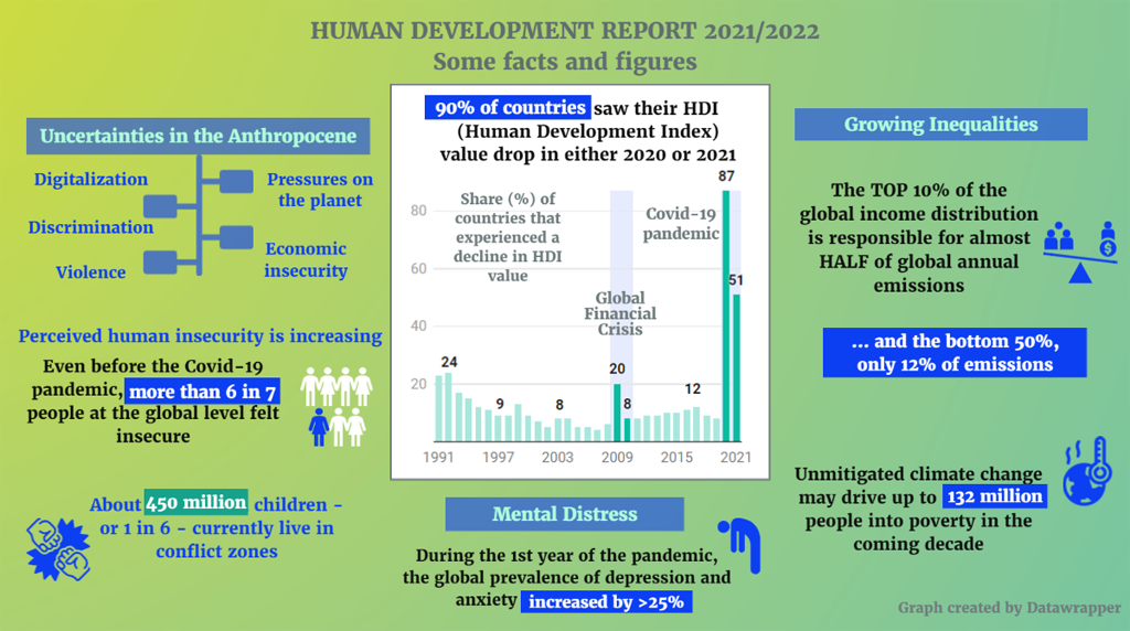 For the first time in the 32 years that the UN Development Programme (UNDP) has been calculating it, the Human Development Index, which measures a nation’s health, education, and standard of living, has declined globally for two years in a row.