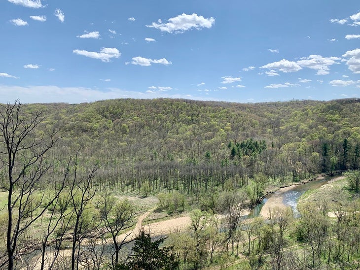 Yes, there’s backpacking in Iowa, and it’s excellent. Yellow River State Forest’s Backpacking Trail winds up and down ravines and sandstone bluffs, dipping through several meandering streams as it hops between four first-come, first-serve backcountry sites. The 14-mile loop stays mostly under the forest canopy, where red-shouldered hawks and bald eagles can be spotted between the oaks and maples.