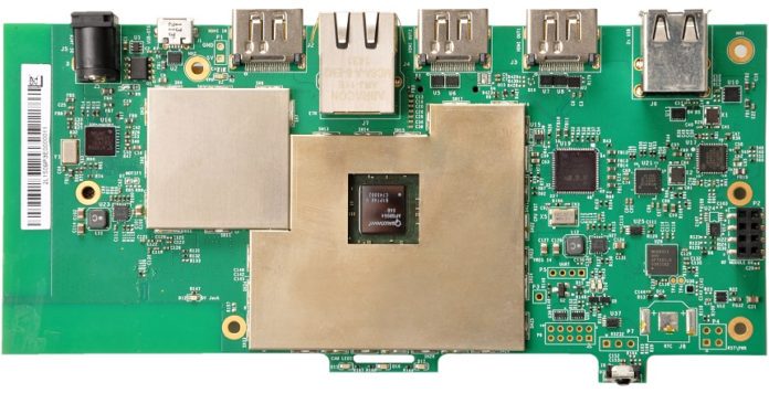 This video conferencing single board computer supports Android Lollipop 5.1.1 BSP with a wide range of I/Os including 2 x HDMI out (1080p), 1 x HDMI in (1080p), Mic-in (ringer), 3 x USB 2.0, 1 x Gb-Ethernet, JTAG, and UART. This platform also supports with EMI shielding and ships as a kit for an additional cost.