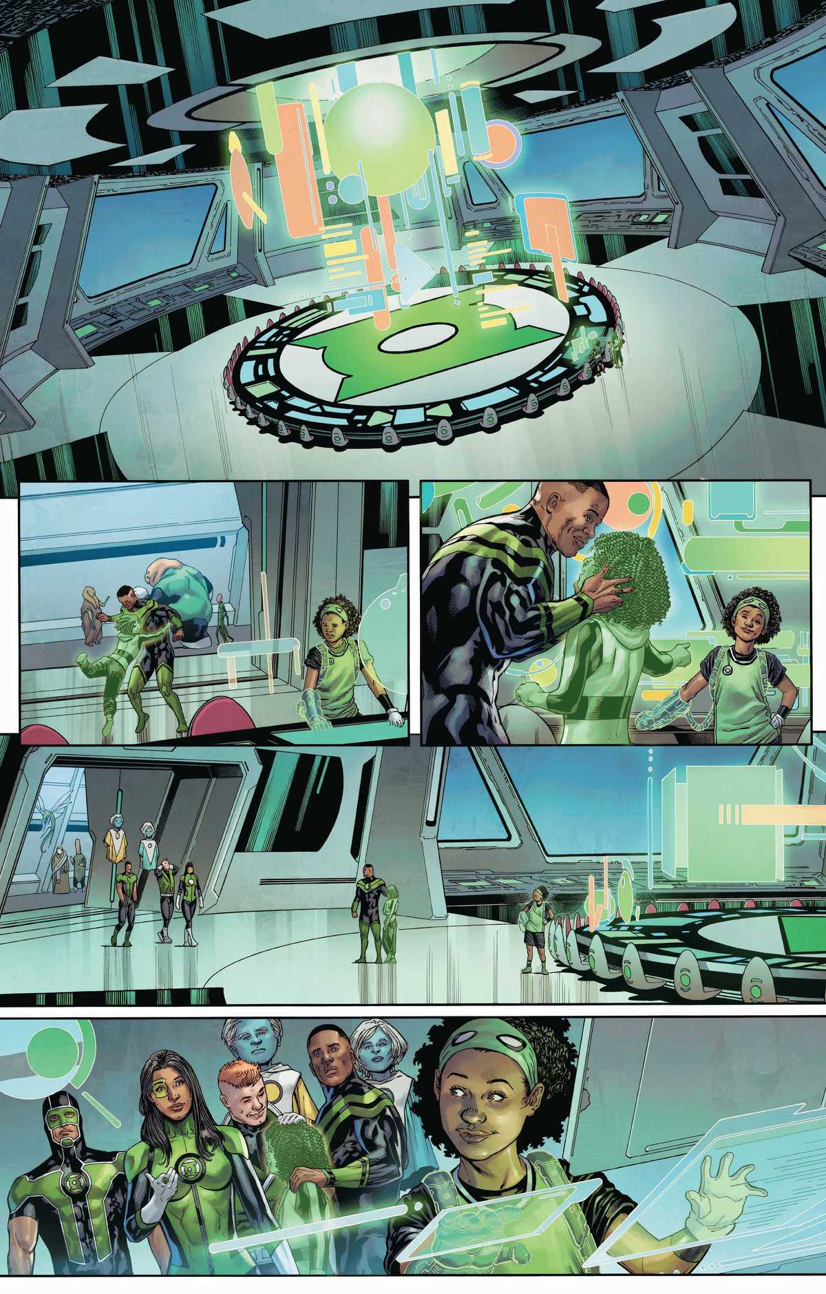 Jeremy Adams: Our plan is to do kind of a couple issue arcs focusing on a plot on one particular Lantern and then a B plot on another particular Lantern, and then we'll change to a couple other different lanterns. Those plot threads are not going to go away. Those characters aren't going to go away. But it's more like shifting the camera toward those characters. I think, Morgan, you said it best. It was definitely more like Star Trek.
