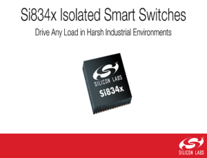 Silicon Labs introduced a family of compact, robust isolated smart switches designed to drive any load, even in the harshest industrial environments. The new Si834x isolated switches are ideal for driving resistive and inductive loads such as solenoids, relays and lamps used in industrial control systems including programmable logic controllers (PLCs), I/O modules, relay drivers and servo motor controllers. Each switch is galvanically isolated for safety using Silicon Labs’ groundbreaking CMOS-based isolation technology, offering better reliability and performance than legacy optocoupler-based isolation, including high common-mode transient immunity (CMTI) of more than 100 kV/µs.