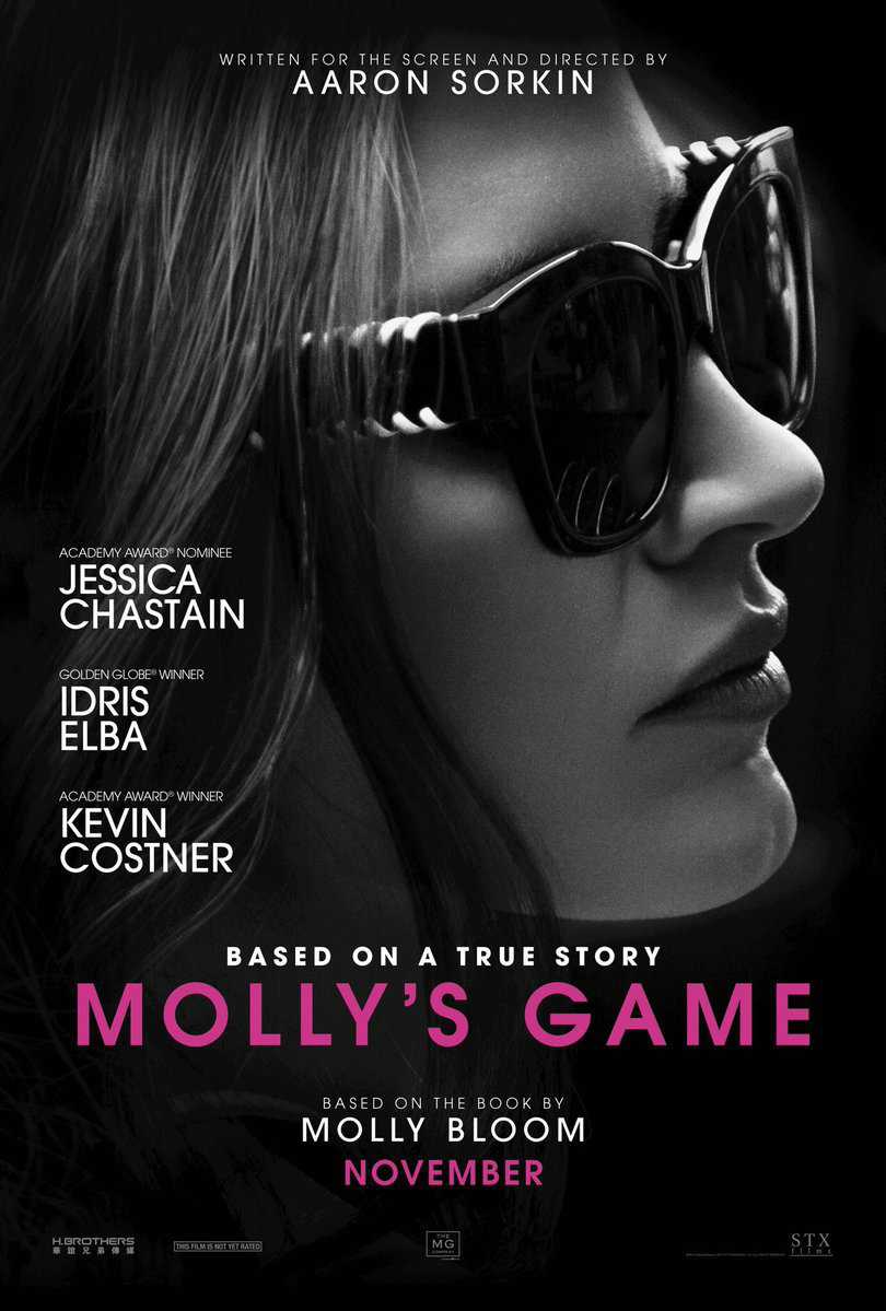 Aaron's Sorkin's Molly's Game stars Jessica Chastain as the real-life Molly Bloom, who ran the most exclusive high-stakes poker games in the world.