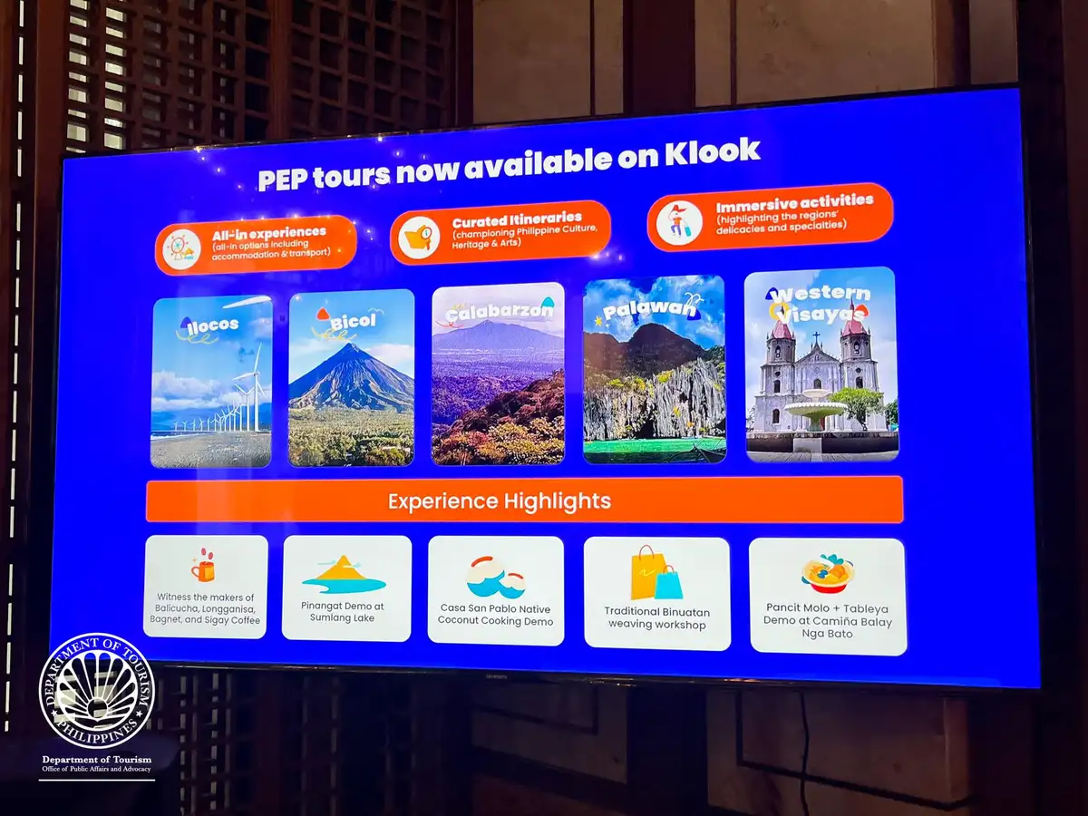 MANILA – The region’s leading online travel platform Klook is now offering curated tour packages from the Department of Tourism’s (DOT) flagship Philippine Experience Program (PEP), featuring five Filipino destinations rich in culture, heritage, and arts.
