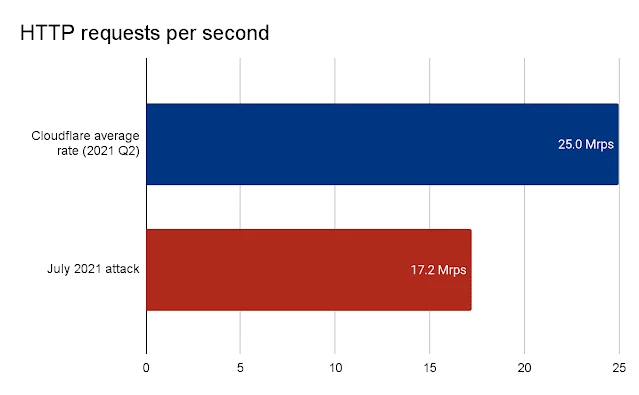 Cloudflare stated that it mitigated a 17.2 million request-per-second (rps) DDoS attack, an attack about three times larger than any previous one that was recorded so far.
