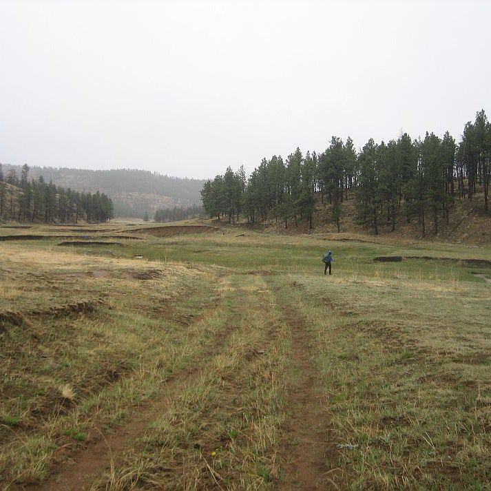 R @ Y, bearing S along dry creekbed; silence prevails in this vast terrain