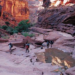 Pass second hill where large brown chuckwalla lizards skitter across the trail. In the cooler hours, scan the brush for the shy desert tortoise