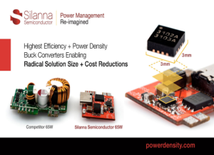 Silanna Semiconductor, The Power Density Leader, announced the launch of their newest family of wide voltage, high-frequency point of load converters targeting USB-PD applications. Silanna Semiconductor focuses on ultimate Power Management challenges with best in class power density and efficiency performance that delights customers with unprecedented BoM savings.