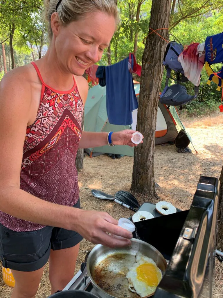 Carol Corbin and campsite cooking. // Photo: Shallan Knowles
