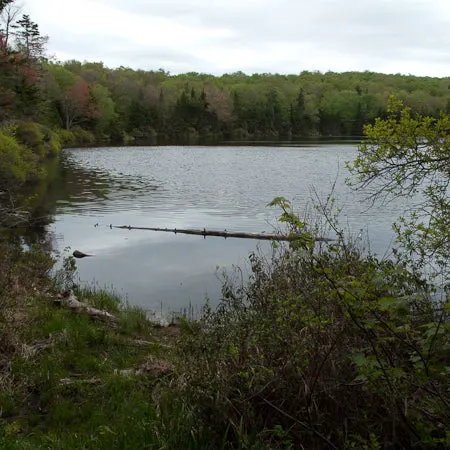 Pass a junction to the Lula Tye shelter (a short walk from the LT). Just ahead there are some tent platforms at Little Rock Pond.