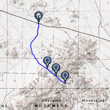 At 3.5 miles, the river continues north around a small bend. Continue northwest for 0.1 mile along the edge of the river’s eastern bank. Ignore the use-trail that leaves the riverbed to the north and climbs up onto this bend–this trail will leave you stranded above the actual route with no safe way down.