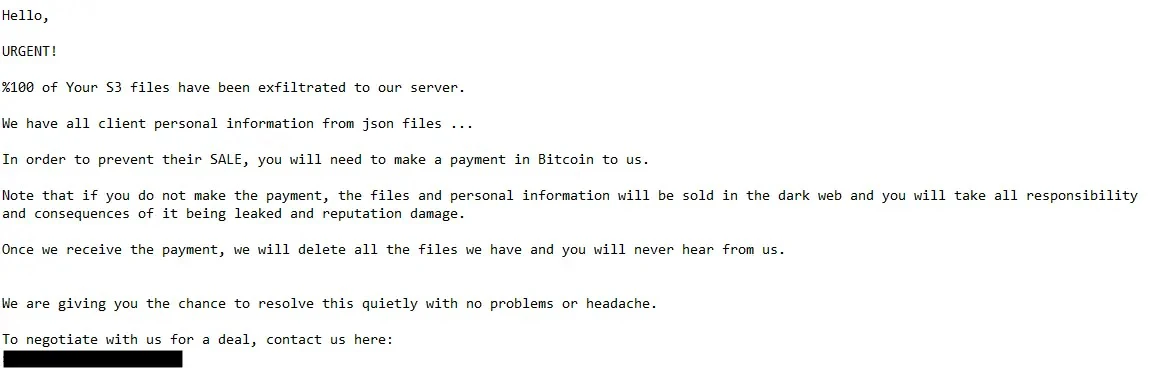 After exfiltrating and deleting data, attackers uploaded ransom notes to the emptied S3 buckets, demanding payment to prevent data leaks and potentially restore deleted information.