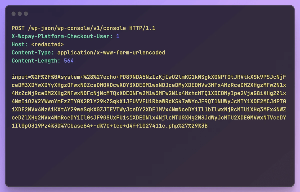 WP Console, once installed, empowers threat actors to execute PHP code and deploy a persistent file uploader as a backdoor, maintaining access even after patching the vulnerability.