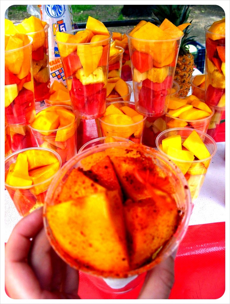 The best street food in the city was located around the Alameda Central (a beautifully designed park in the center) and the Zocalo. Foods include Elote (corn on the cob), Tlayudas (thin crunchy tortillas topped with refried beans, lettuce, salsa and cheese), Tacos, popcorn, cups of easy-to-eat pre-cut strips of fruit including mango, watermelon, cantelope, jicama, even cucumber, which can be sprinkled with as much lime and chili powder as desired.