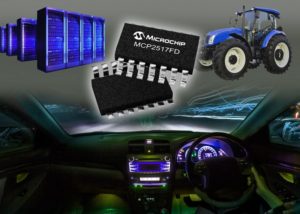 The industry’s first external CAN Flexible Data Rate (CAN FD) controller is now available from Microchip Technology Inc. The MCP2517FD allows designers a simplified path to upgrade from CAN 2.0 to CAN FD and benefit from CAN FD protocol enhancements.
