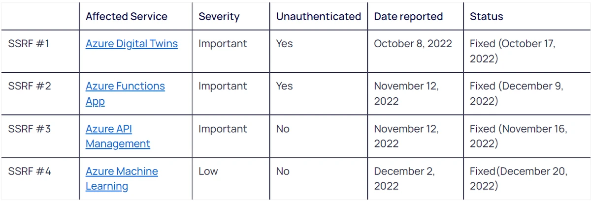 Orca recently conducted an investigation into several Microsoft Azure services and discovered four instances where various services were uncovered to be susceptible to a Server Side Request Forgery (SSRF) attack.