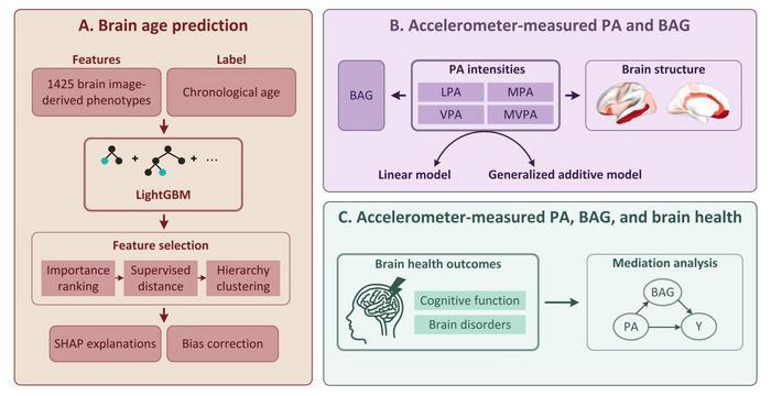 The research team analyzed a vast cohort of 16,972 UK Biobank participants, capitalizing on long-term accelerometer data that objectively quantified participants’ physical activity over a full week. This method overcame limitations of self-reported exercise data commonly used in prior studies, which often suffer from recall biases and inaccuracies. Harnessing state-of-the-art machine learning algorithms, specifically the powerful Light Gradient Boosting Machine (LightGBM), researchers deciphered the complex nonlinear relationship between physical activity intensity and brain health, using over 1,400 image-derived phenotypes (IDPs) extracted from T1-weighted magnetic resonance imaging (MRI) scans.