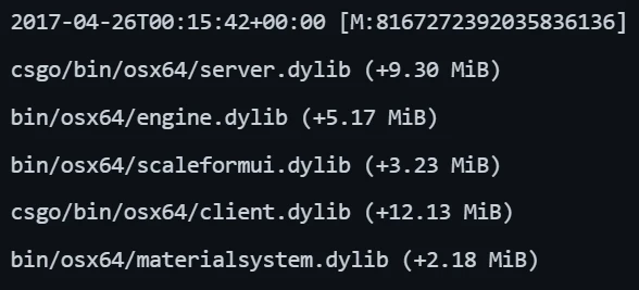 The April 2017 version of CS: GO for macOS unintentionally included full debug symbols, which could be automatically identified through tools like SteamDB and old repositories. However, Valve appears to have disabled the ability to download older versions via SteamCMD.