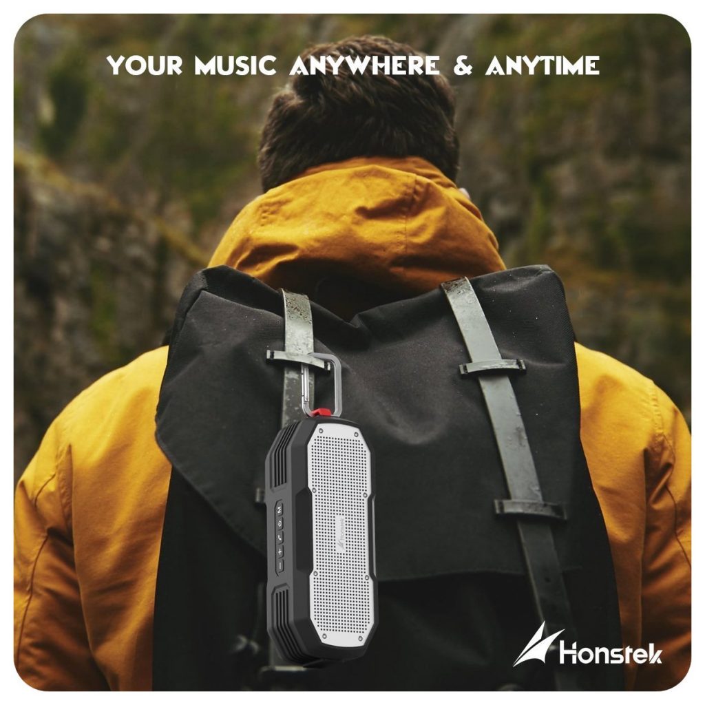 he Honstek K9 Outdoor speakers with dual drivers promise 16 hours playtime for your smartphone. They are waterproof, shockproof and dustproof, and are small enough to attach to a backpack via the portable hook.
