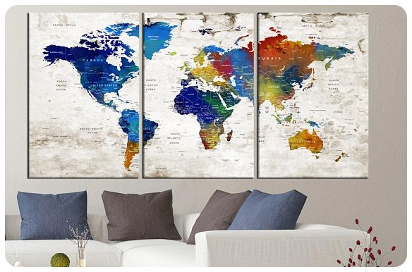 Large World Map Wall Art Canvas