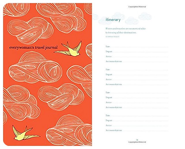 Everywoman’s Travel Journal is a beautiful travel journal. It comes with lined and blank pages, perfect for sketching, and it has plenty of additional information and tips including information on safety for female travelers, natural remedies against common travel ailments, packing tips and lists, travel etiquette, and more. The inside pocket is perfect for ticket stubs, postcards, and other mementos.