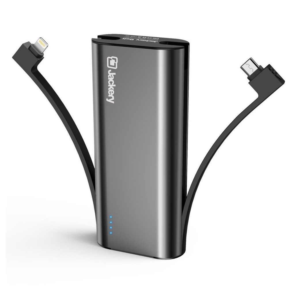 A smaller option would be the Jackery Bar travel charger which also has an emergency flashlight ($15.99) and has an option that comes with built-in lightning cables (one for iPhone, one for regular USB devices), meaning you won’t have to carry around your charging cords. It claims that it is twice as fast as the original iPhone charger ($22.99).