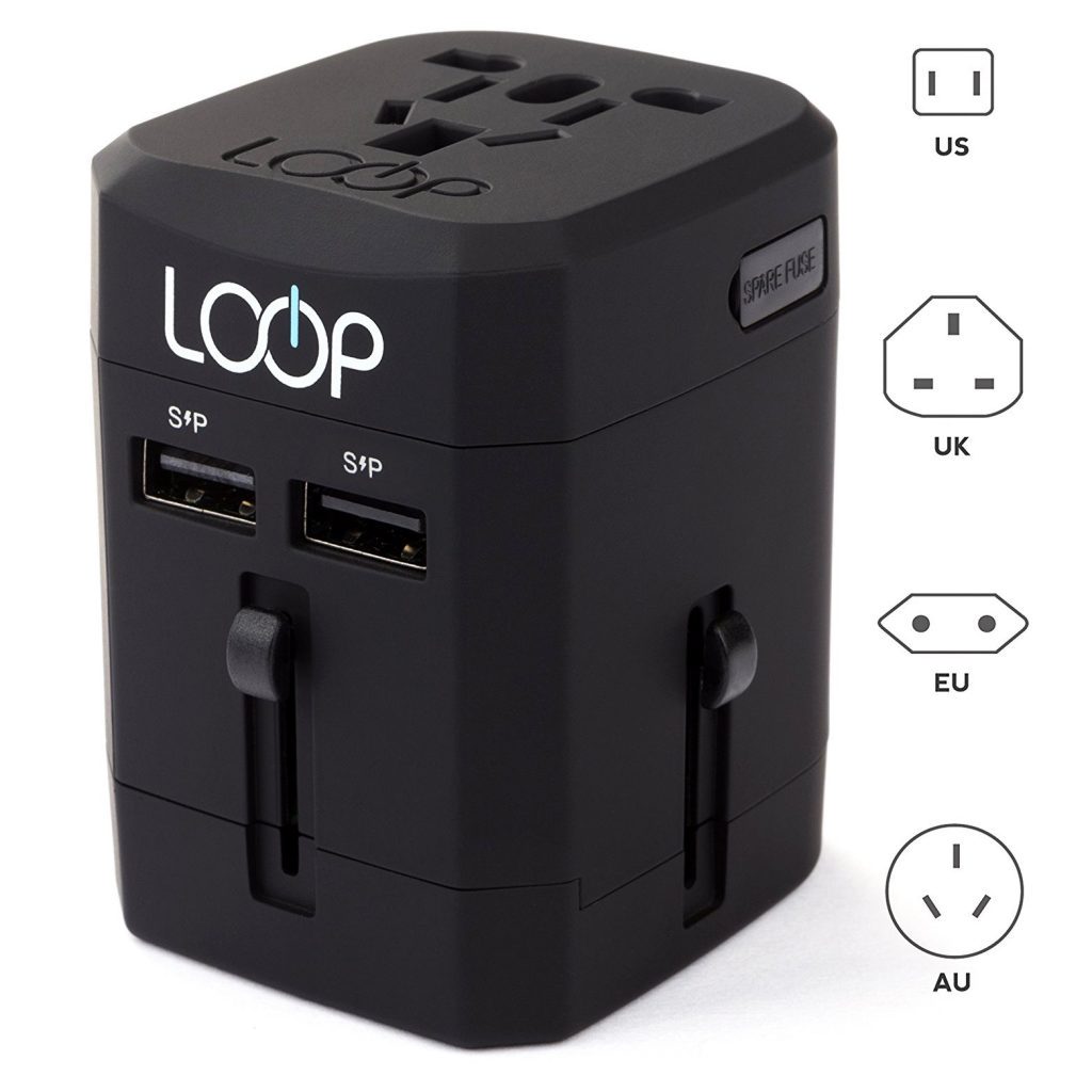 If you are looking for a gift for someone who is planning to travel internationally, the LOOP world adapter charger with dual USB charging ports and a universal AC socket is a gift that will be greatly appreciated. It works in more than 150 countries and charges three devices at the same time.
