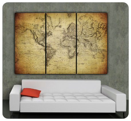 well received by anyone who loves traveling. The three panel vintage world map is the print reproduction of an 1850s antique map and is about 6 feet wide and 4 feet tall.