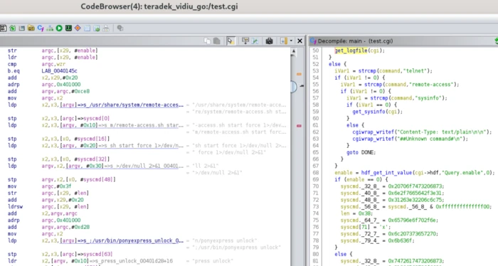 Apart from all this, the most interesting function is to investigate, and apparently, it is conceivable to find more vulnerabilities. However, it most probably concentrates on the backdoor access function encountered in /home/www/cgi-bin/test.cgi.
