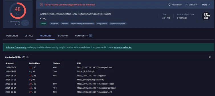 VirusTotal findings indicate that AresLoader remains a prevalent threat despite the emergence of ManticoraLoader, which suggests that AresLoader’s capabilities, such as its ability to bypass security measures and execute malicious payloads, make it a valuable tool for threat actors.