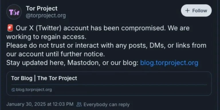 Recent high-profile breaches include the compromise of Tor Project’s X account on January 30, 2025, which was used to promote fraudulent cryptocurrency schemes.