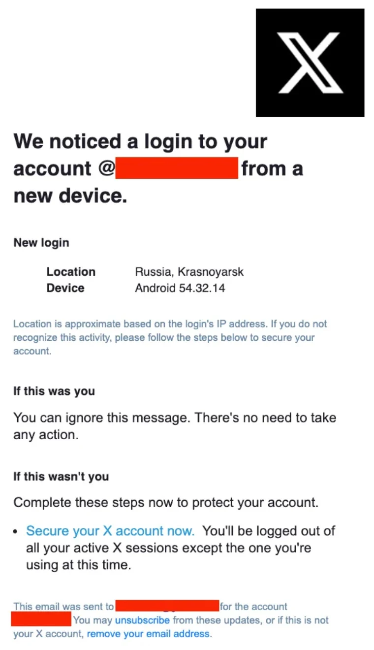 A typical email might claim, “We noticed a login to your account from a new device,” with a link redirecting victims to a malicious credential-stealing site.