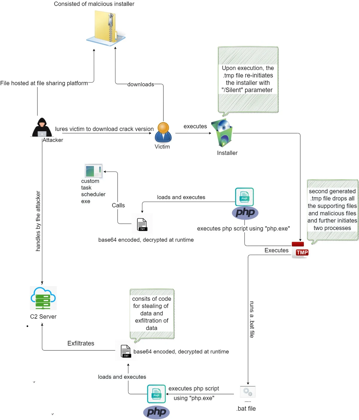 A malicious PHP script gets activated when the victim executes the program installer. Now from the victim’s web browser, the threat actors steal the following sensitive data by running arbitrary code with the help of this malicious PHP script:-