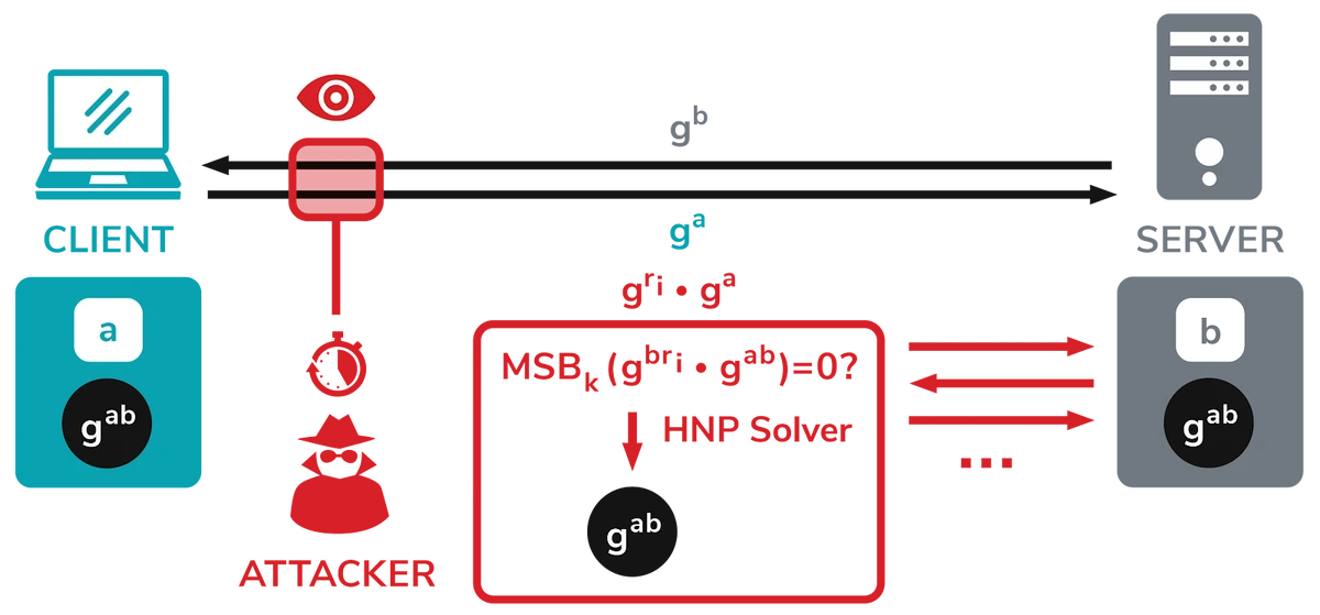 While on the other hand, the attacker can perform accurate timing measures, as it will enable him/her to obtain whether the first byte of the DH shared confidential starts with zero or not.