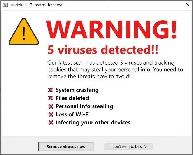 The goal is to panic users into downloading fake antivirus software, which can lead to serious security breaches.
