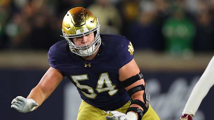 A few plays into Notre Dame's first drive of the second quarter, starting left tackle Anthonie Knapp went down hard after quarterback Riley Leonard rolled up his leg on a QB scramble.