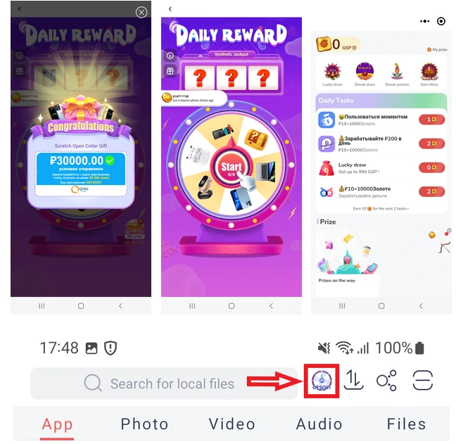 The SpinOk module appears to keep users interested in apps through mini-games, a system of activities, and purported awards and reward systems.
