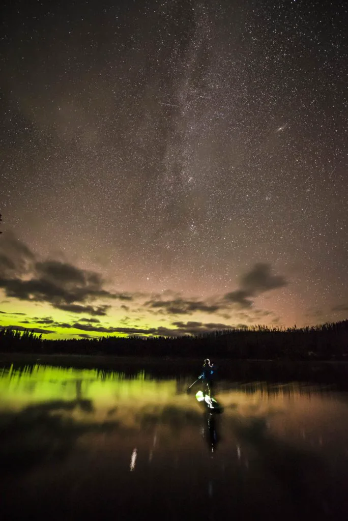 After a sunset viewing at the falls, we returned to our campsite to enjoy our remaining chocolate and whiskey. As the temperatures dropped and the stars came out, I noticed some aurora on the northern horizon, and we couldn’t resist getting out for one last paddle under the stars. The next morning, our pilot came in to retrieve us, and we would soon be reunited with civilization. On our drive home, the smoke had cleared out around Williams Lake, where just a week earlier it had covered the region in a thick haze. Rain had saved the day— and quenched our thirst for adventure.
