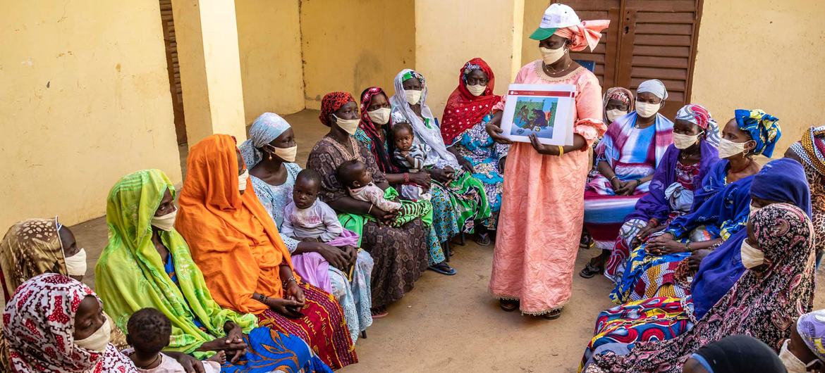 A woman leads a focus group in Mali, where she sensitizes girls and women against all forms of violence, including child marriage and female genital mutilation, in order to bring behavior change.