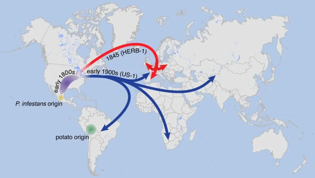 But late blight disease is a serious problem in both countries, destroying 25 to 57 percent of the crop.