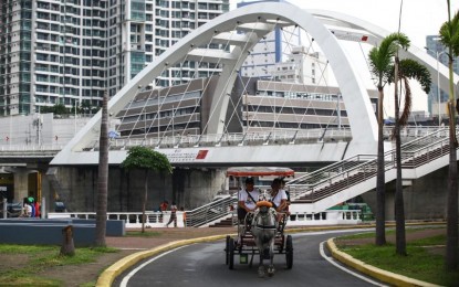 REVIVING THE RIVER. Local tourists on a kalesa (horse-drawn carriage) go around Intramuros, Manila on Tuesday (June 25, 2024), behind them the stairs with access to the Binondo-Intramuros Bridge. The government's ambitious project “Pasig Bigyang Buhay Muli” envisions the revitalization of the Pasig River, with a look and feel of famous waterways like the Seine in Paris, France or the Chao Phraya in Bangkok, Thailand. (PNA photo by Joan Bondoc)