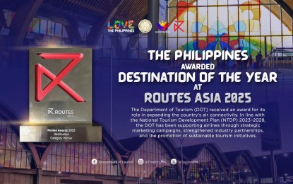 MANILA – The Philippines has won the Destination of the Year Award at the Routes Asia 2025 Awards held in Perth, Australia.