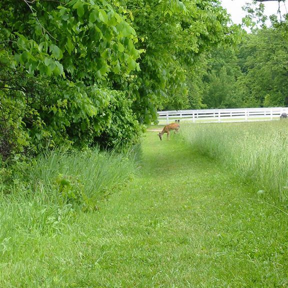 Trailhead; sharp L, then follow green signs marking .5-mile passage through Hancock Ranch property