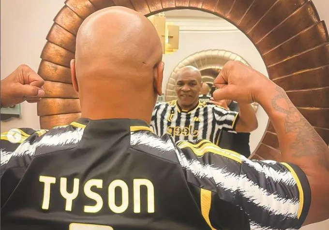 Former American boxer Mike Tyson has donned a 2023-24 Juventus home shirt while filming in Turin.